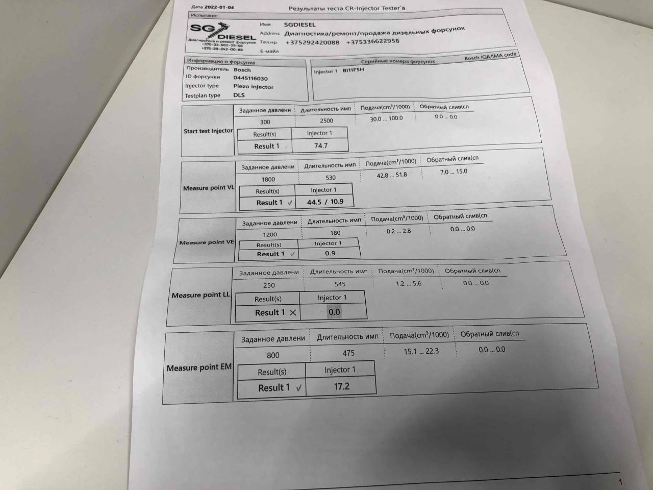 BOSCH. Из Англии. Хорошее состояние. Проверена на стенде. Отклонение от нормы по одному параметру. Тест план прилагается.