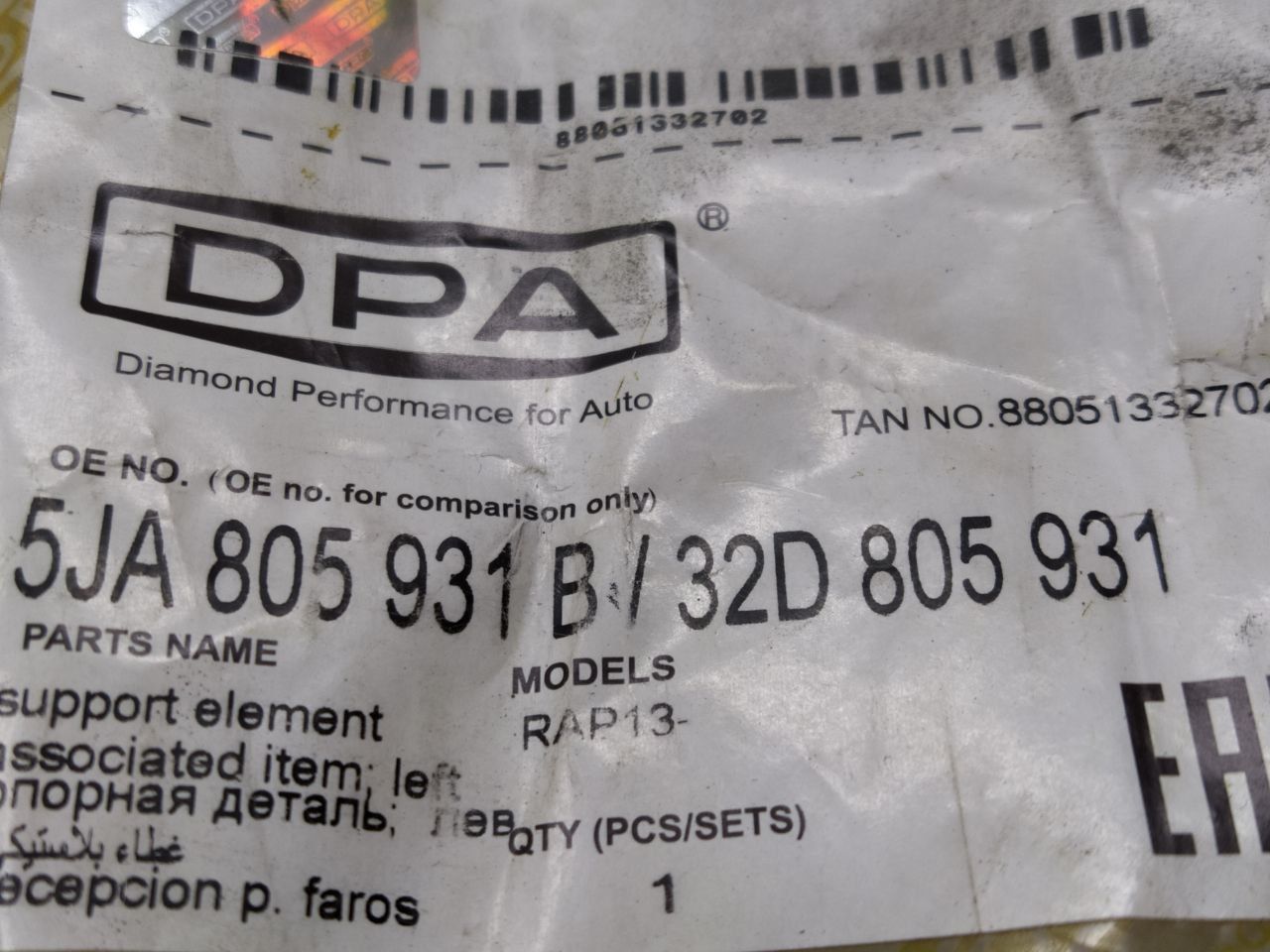 | Номер запчасти | 5JA805931B, 32D805931 |